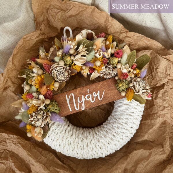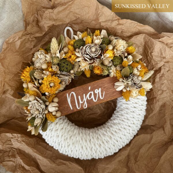 Minden szükséges kellék egy nyári hangulatú ajtódíszhez, amelyet magad készíthetsz el.